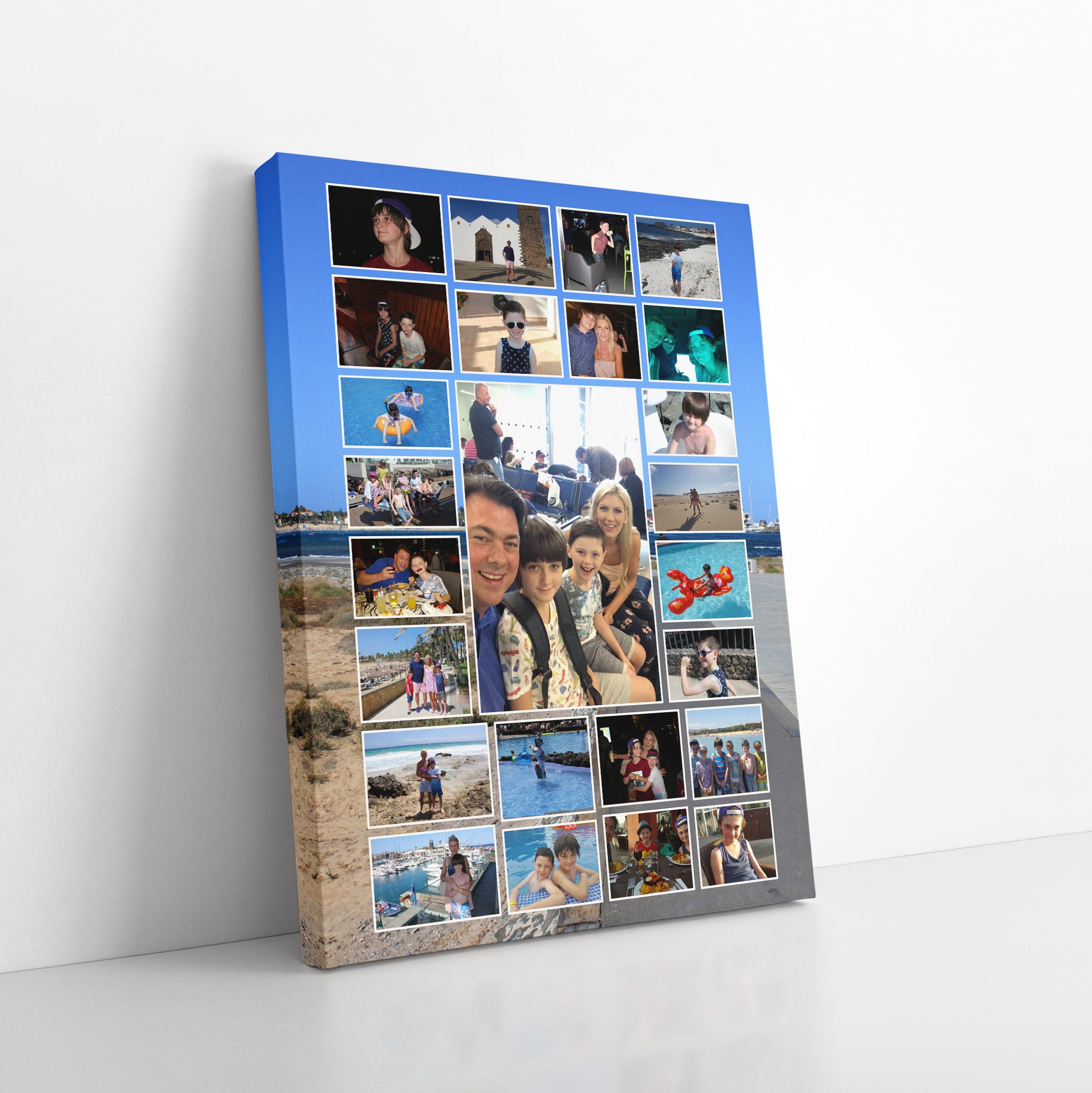 This is apart of our Centre Collage Range. We put up to 100 images of your choice onto your chosen Traditional Size Canvas, the images can also be turned into black and white if you so wish. You can also add a message and place or event title to make it very personal. Upload all your images for this in the section above then we will send you an email with a proof and upon approval we can print and process.This is a perfect present for any occasion or to remember a special day out or holiday or just saying how amazing someone is for Mothers or Fathers Day.