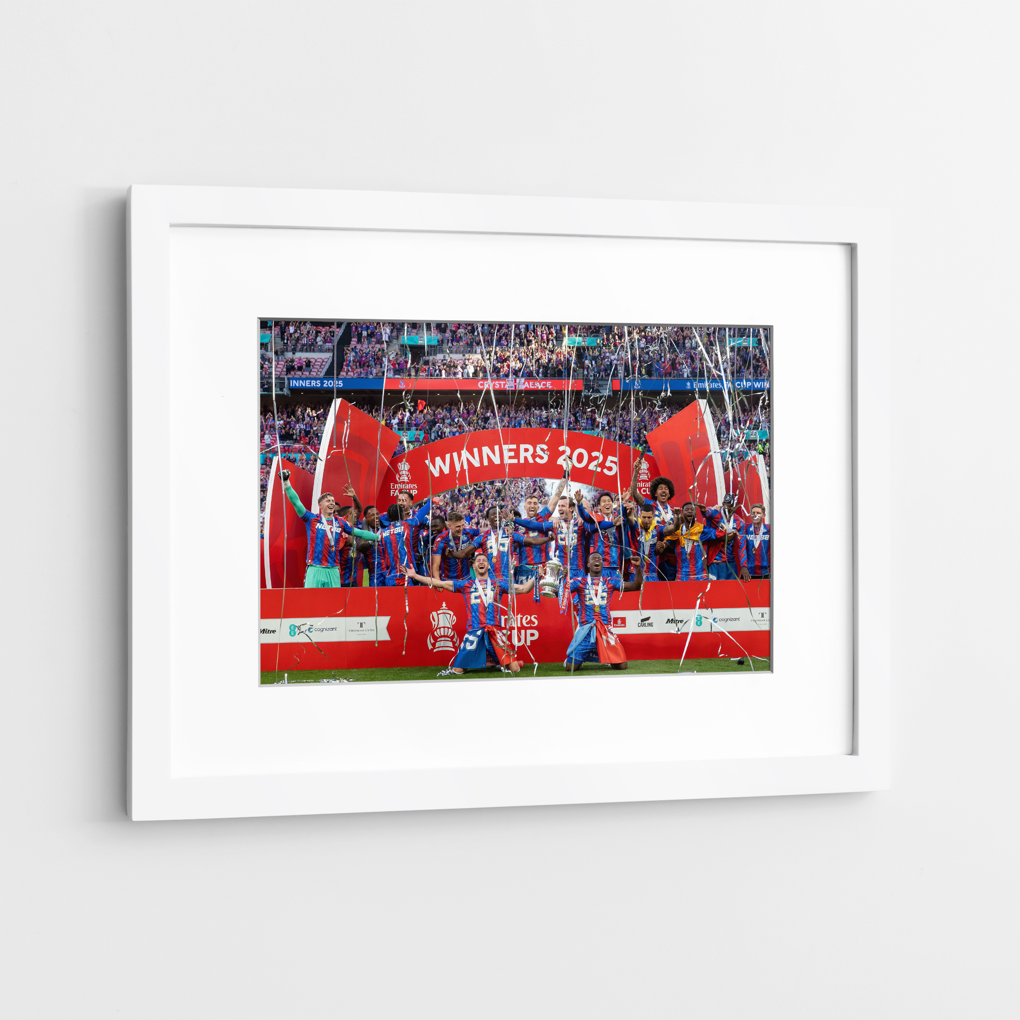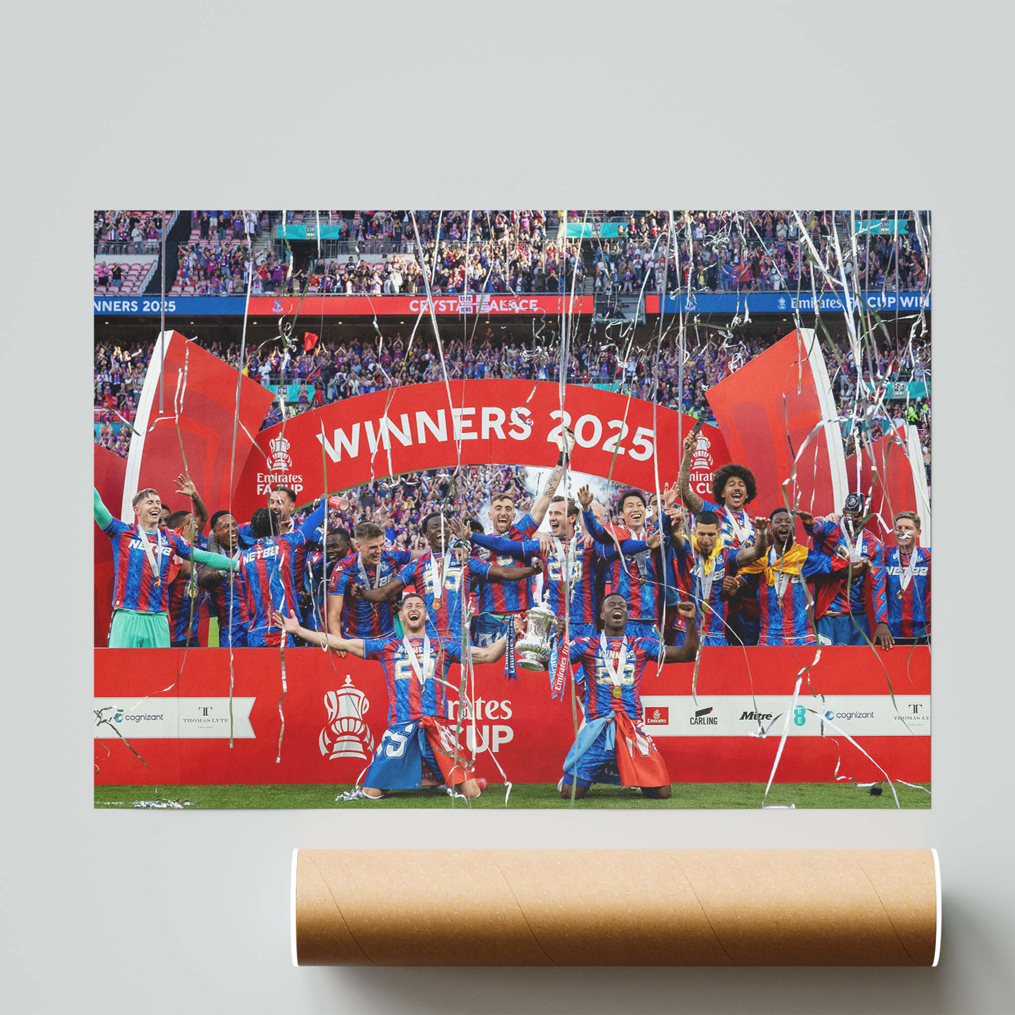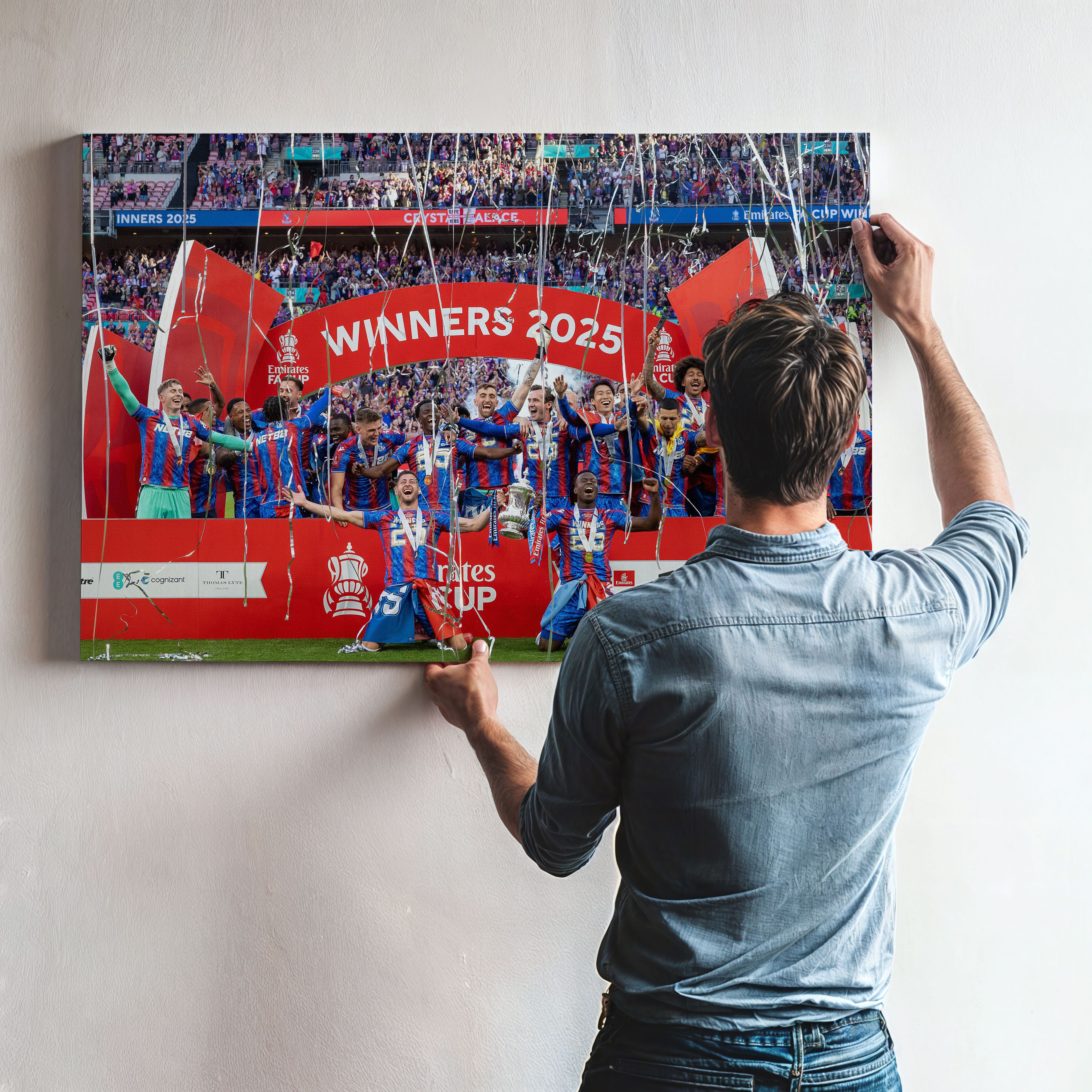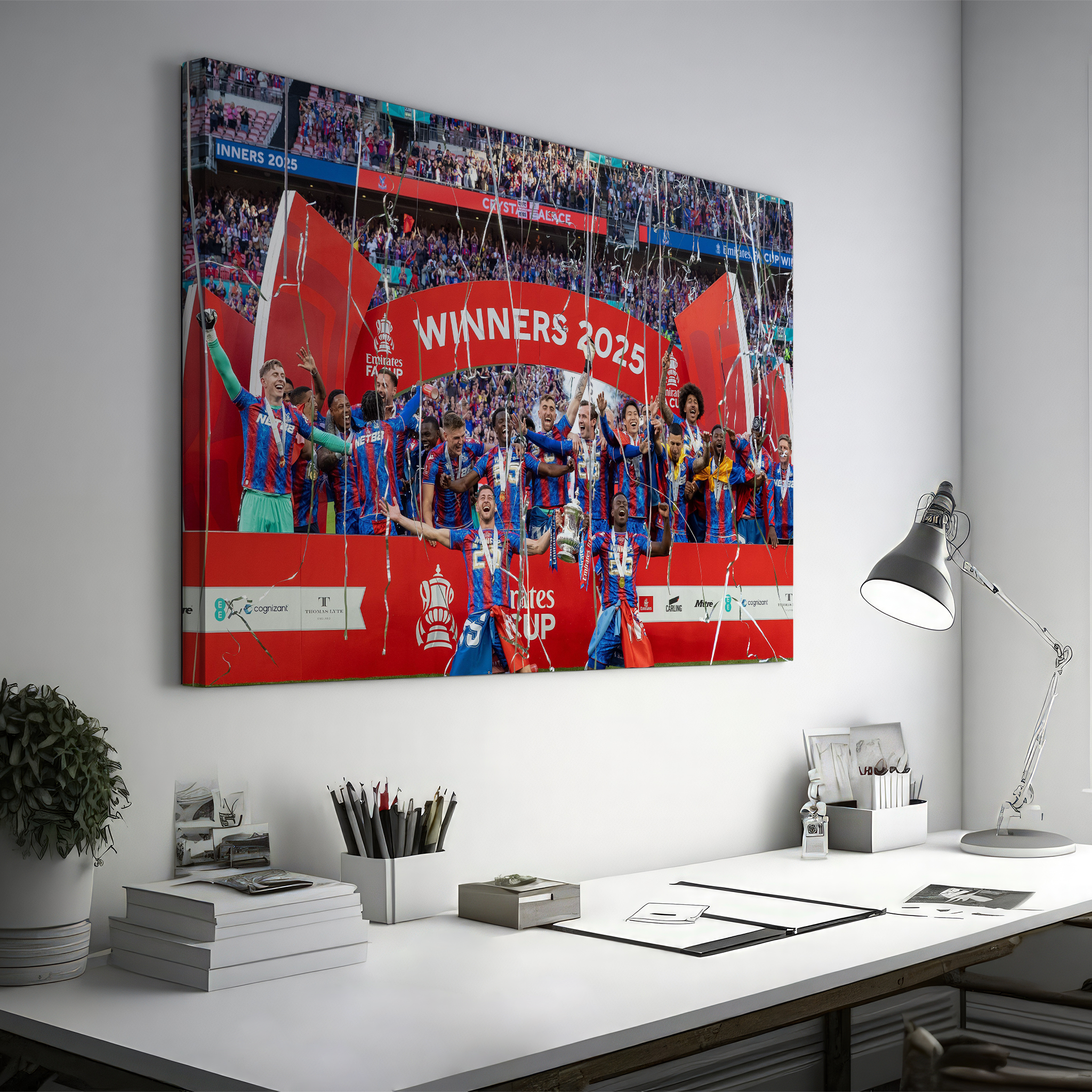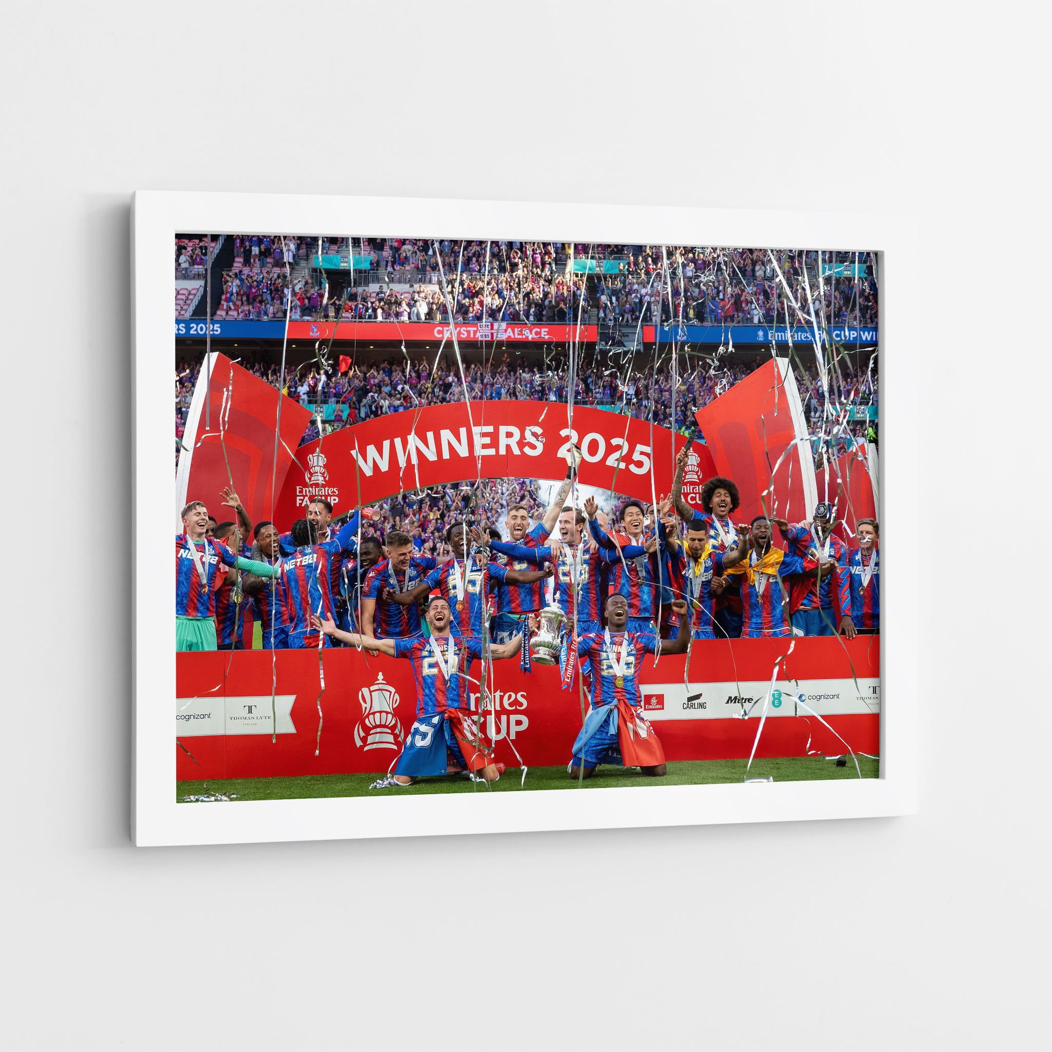 This is our Crystal Palace FA Cup Winners 24/25 items, which is apart of our Sports Collection. This taken from Trophy Lift on Saturday 17th May 2025 where they awarded the FA Cup for beating Manchester City in the Final 1-0 to clinch the clubs first ever major trophy in 120 years! Â This image can be printed onto canvas, mounted print or photo print! There are various difference sizes available in all different finishes, this is a fully licensed image with rights purchased.