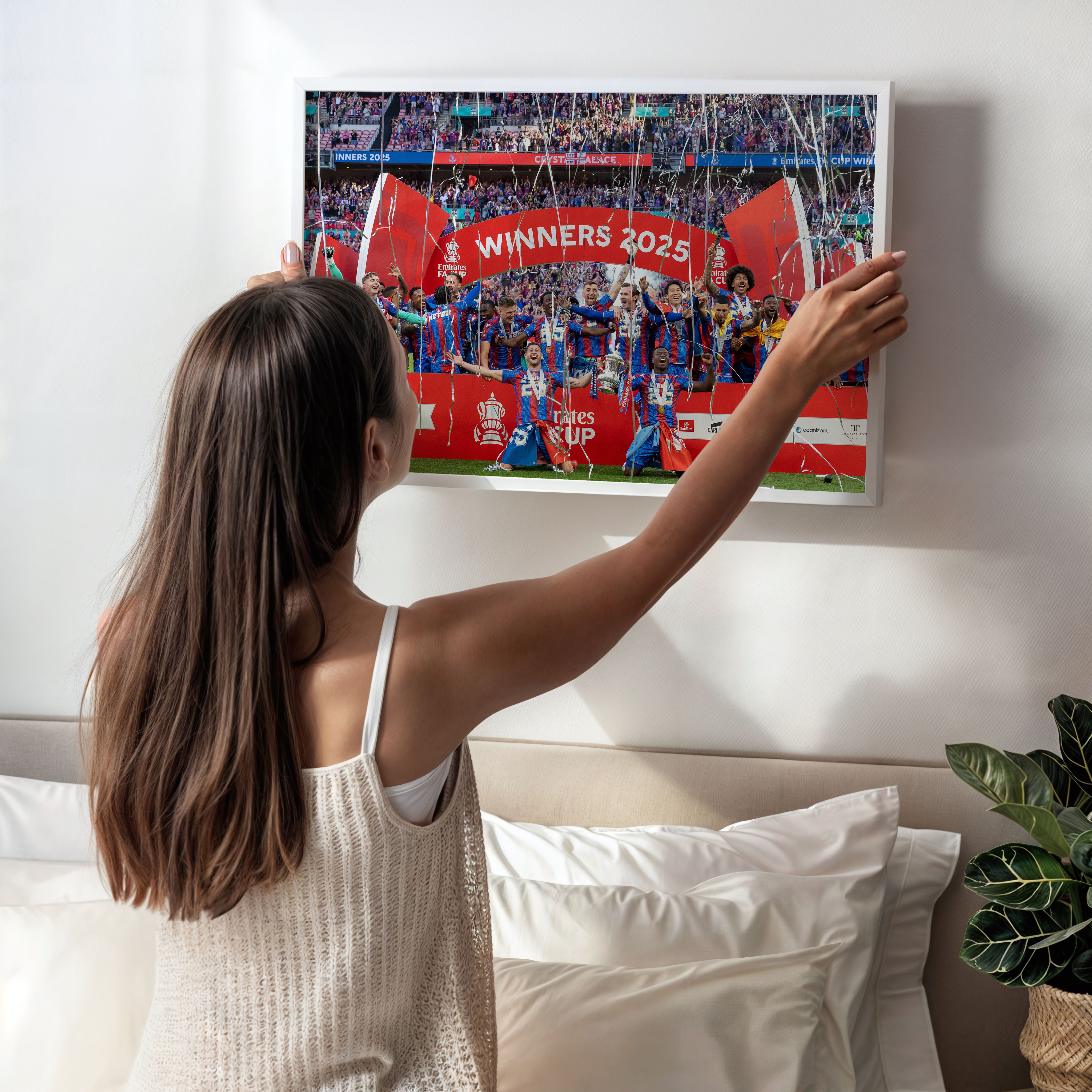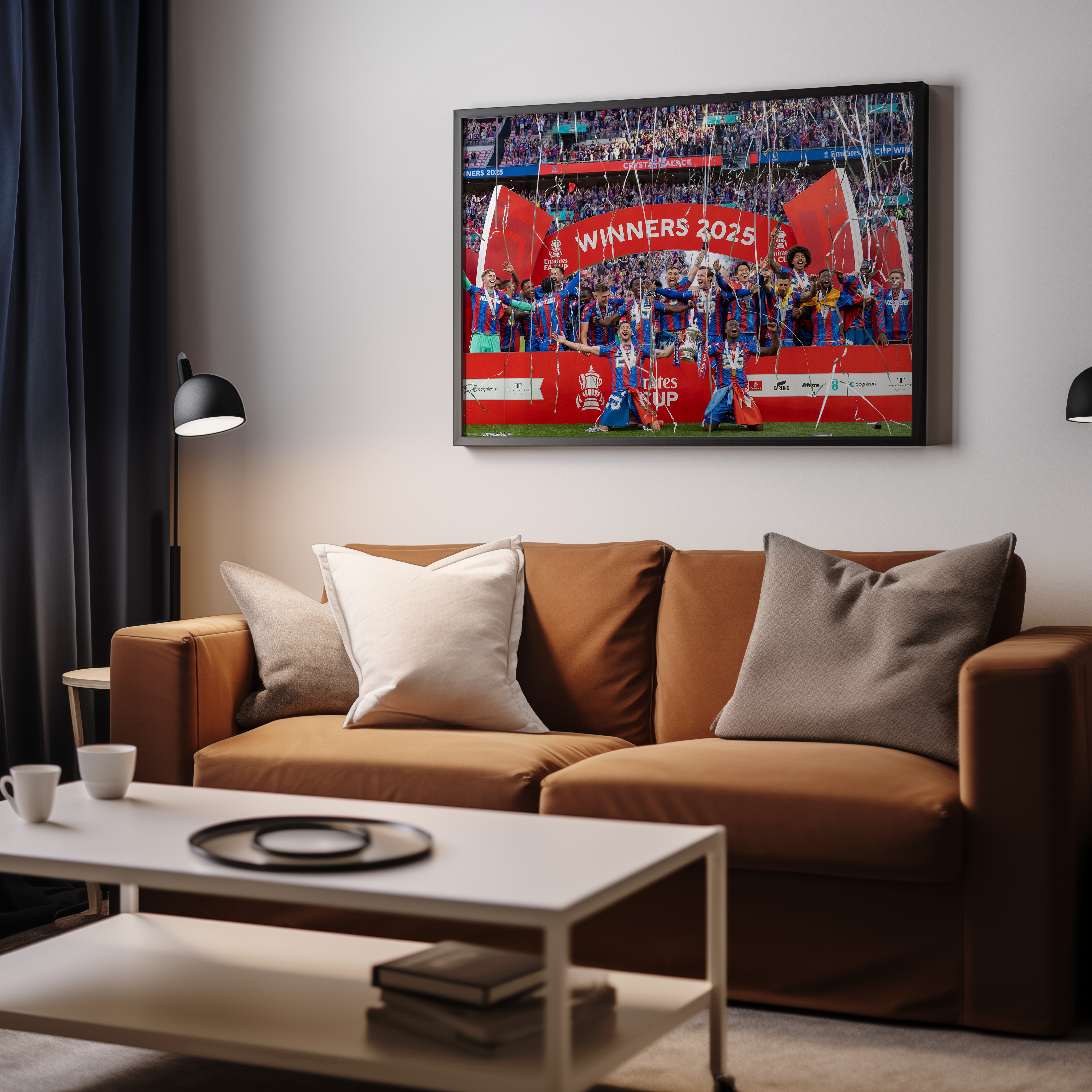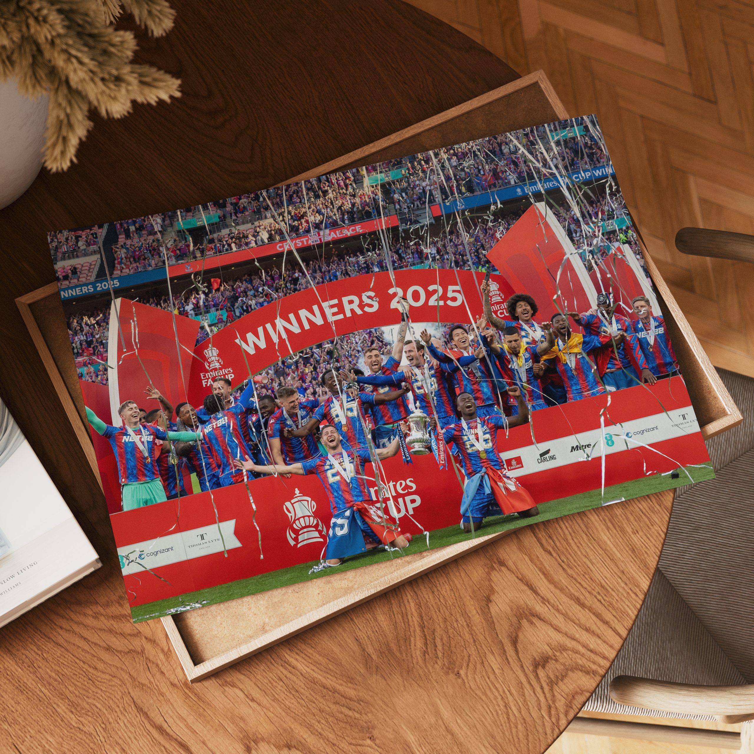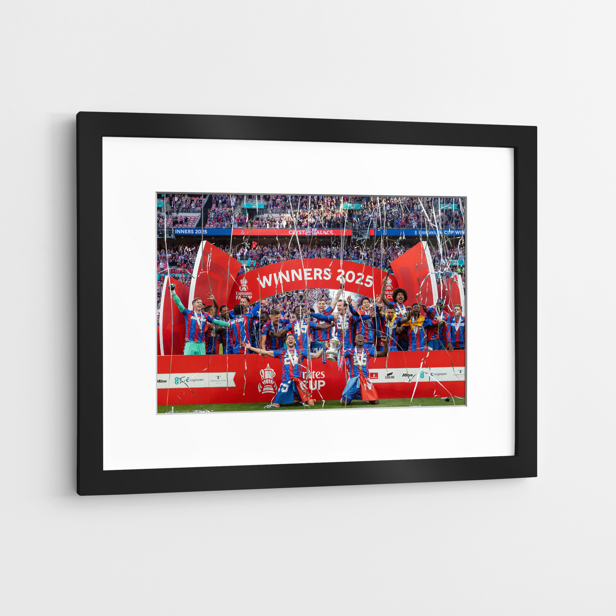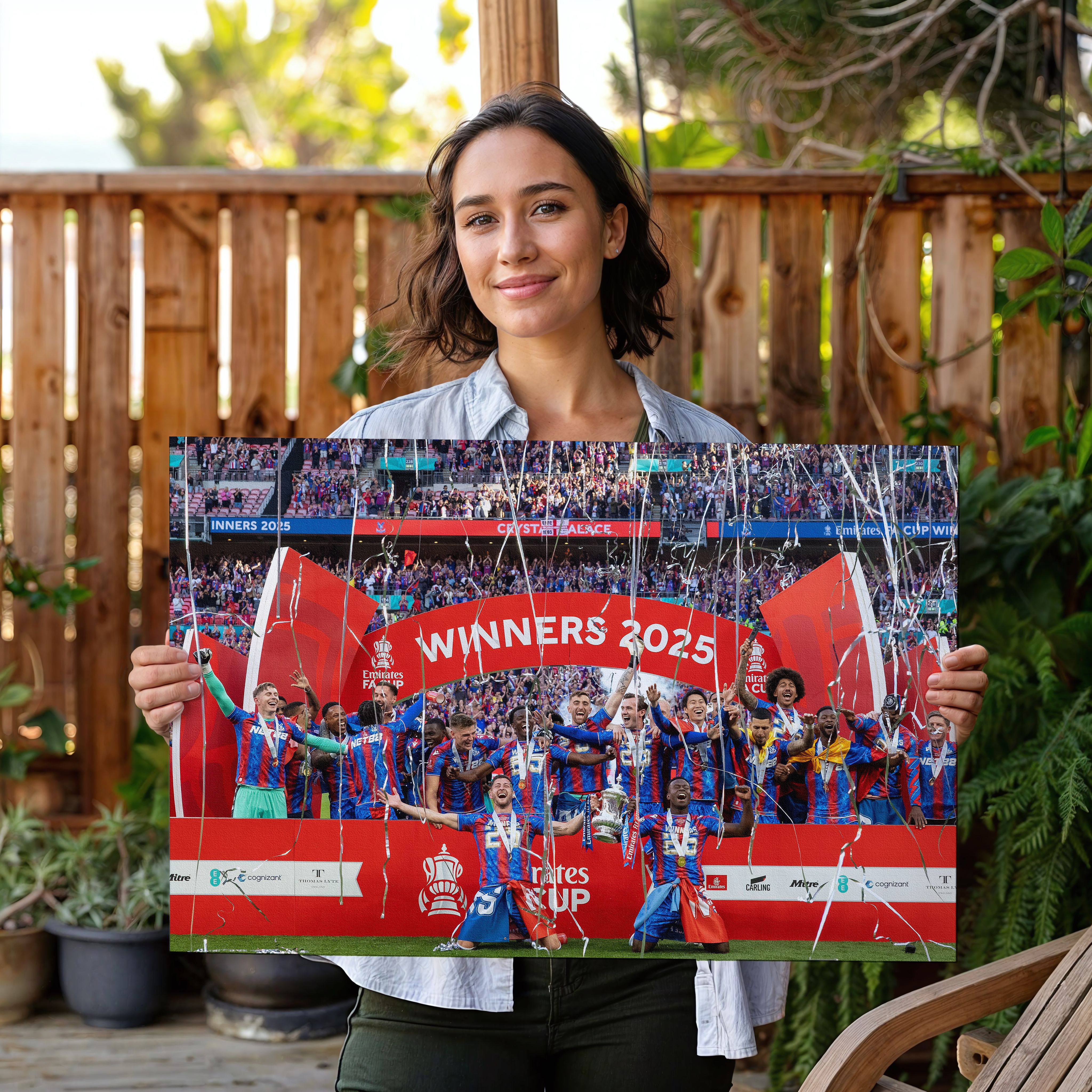 This is our Crystal Palace FA Cup Winners 24/25 items, which is apart of our Sports Collection. This taken from Trophy Lift on Saturday 17th May 2025 where they awarded the FA Cup for beating Manchester City in the Final 1-0 to clinch the clubs first ever major trophy in 120 years! Â This image can be printed onto canvas, mounted print or photo print! There are various difference sizes available in all different finishes, this is a fully licensed image with rights purchased.