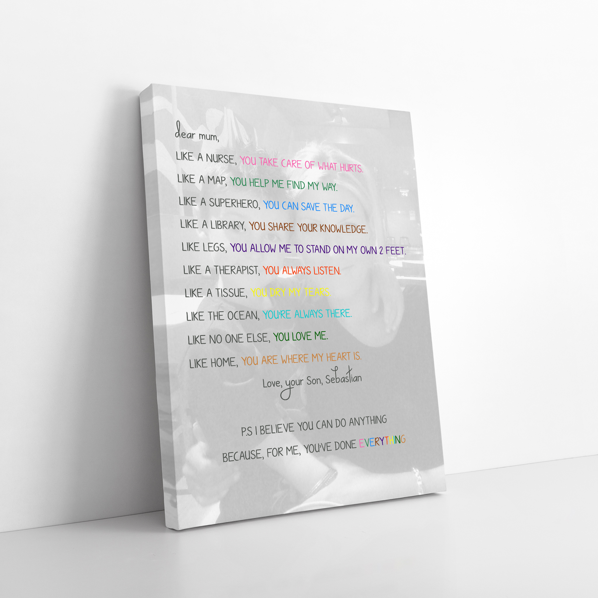 Create this amazing ‘Dear Mum Canvas’ with a personalised message and picture and we also will be donating £5 for every single product sold to the ‘Sue Ryder Charity’
