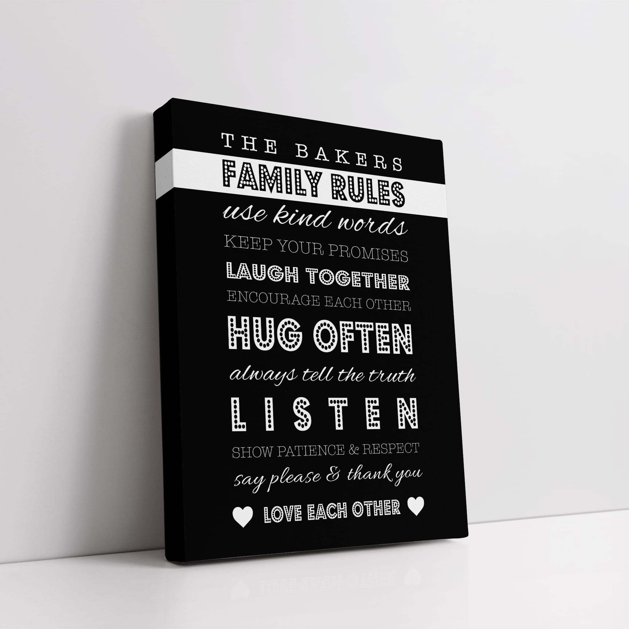 Create this amazing ‘Family Rules Canvas’ personalise with your family name and choice the colour background and we also will be donating £5 for every single product sold to the ‘Sue Ryder Charity’