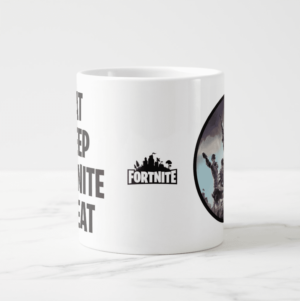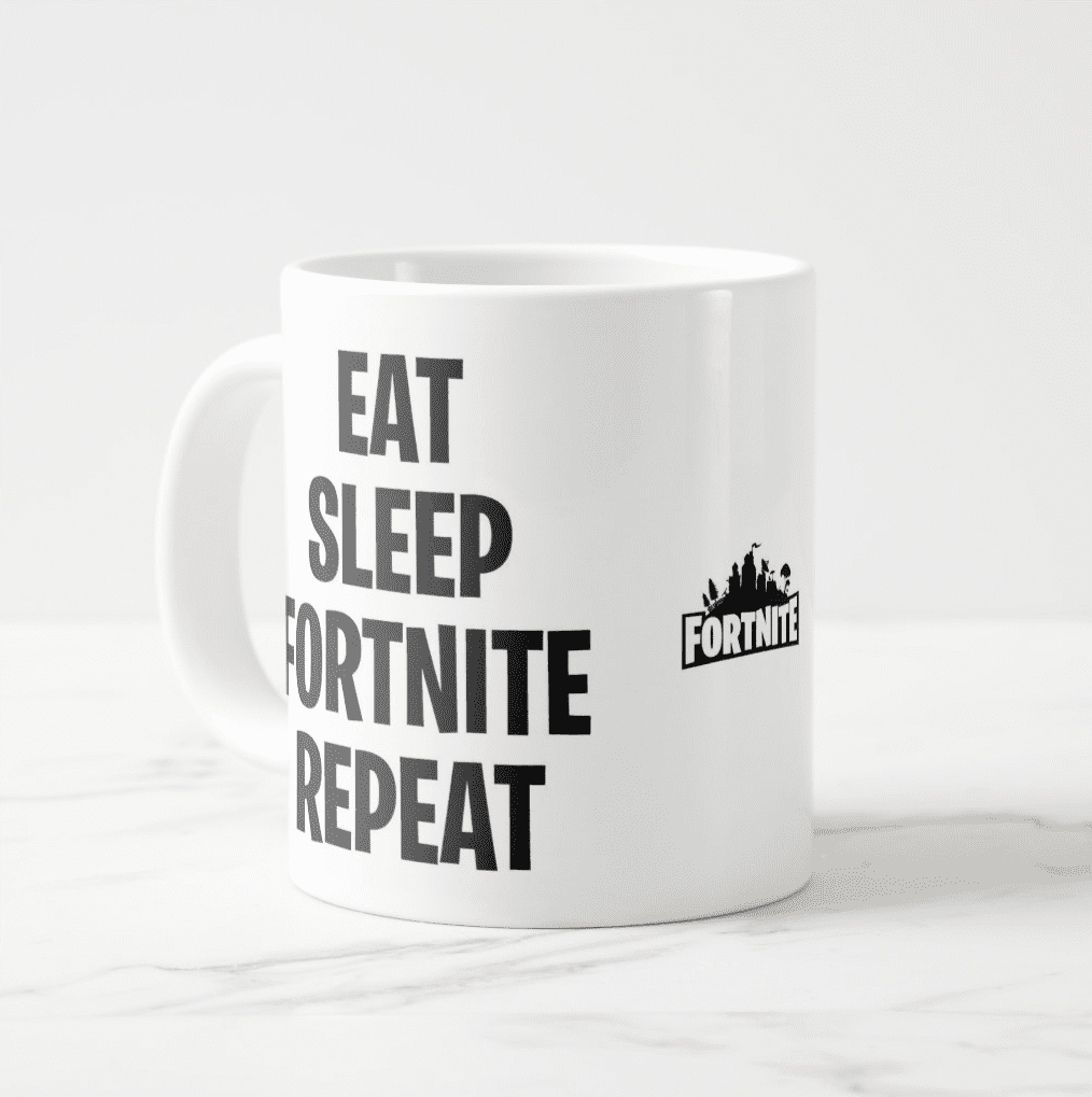 We are very pleased to have this ‘Fortnite Eat, Sleep, Fortnite, Repeat Mug’ to add to our Mug & Fortnite collection. All our mugs are a 10oz size and have a superior quality heavy weight ceramic and has a super hard coating and are dishwasher resistant up to 800 wash cycles at 45°C.
