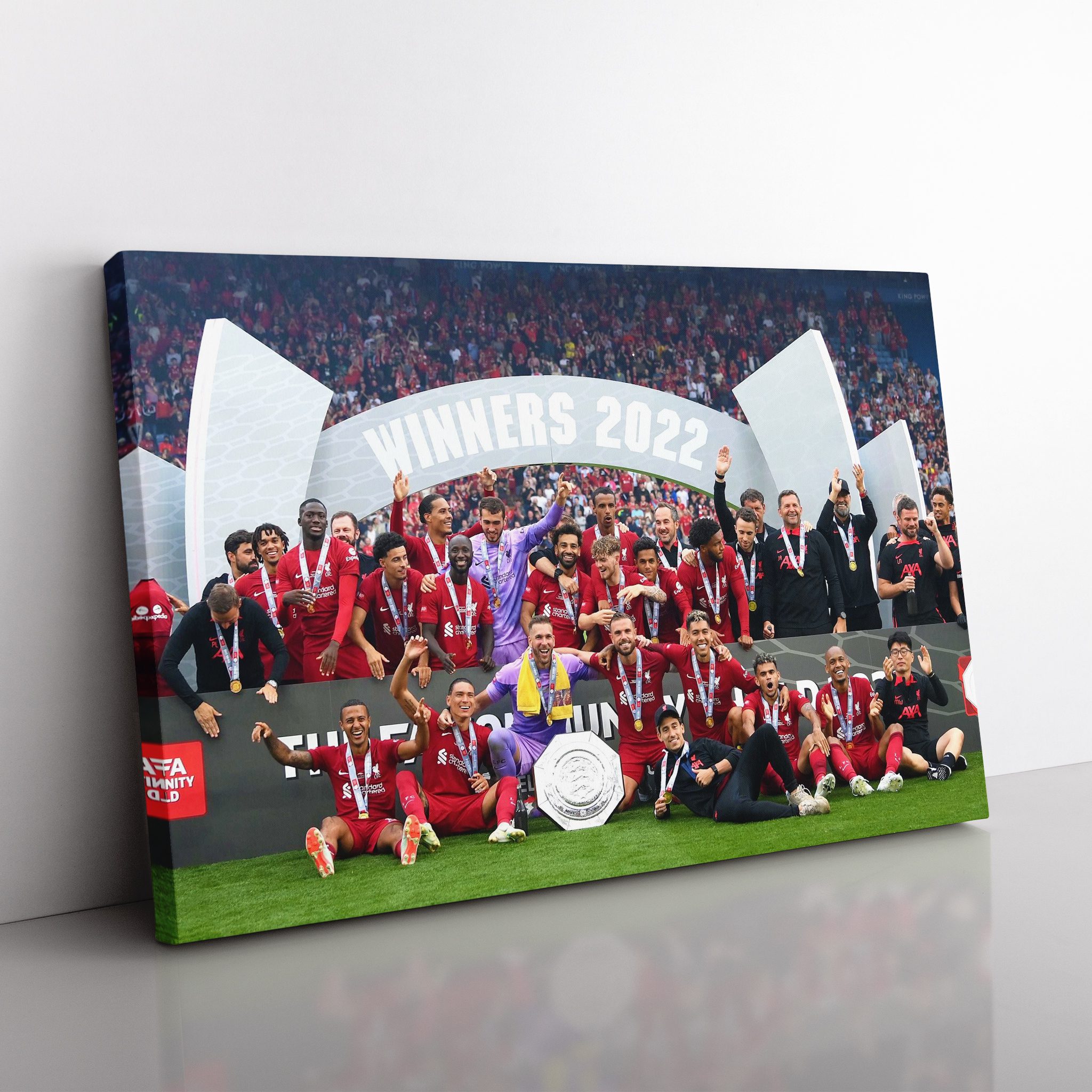 This is our Liverpool Community Shield Winners 2022 Canvas & Post Prints, which is apart of our Sports Collection. This taken from the Community Shield Win on Saturday 31st July 2022 where Liverpool beat Manchester City 3-1! This canvas comes in three different sizes; 20×12″, 24×14″ and 30×18″, each canvas is wrapped on our 38mm Gallery Frame and come with a saw tooth hanger ready to hang proudly on the wall! Also we have the product available in traditional sizes in Luster Poster too!