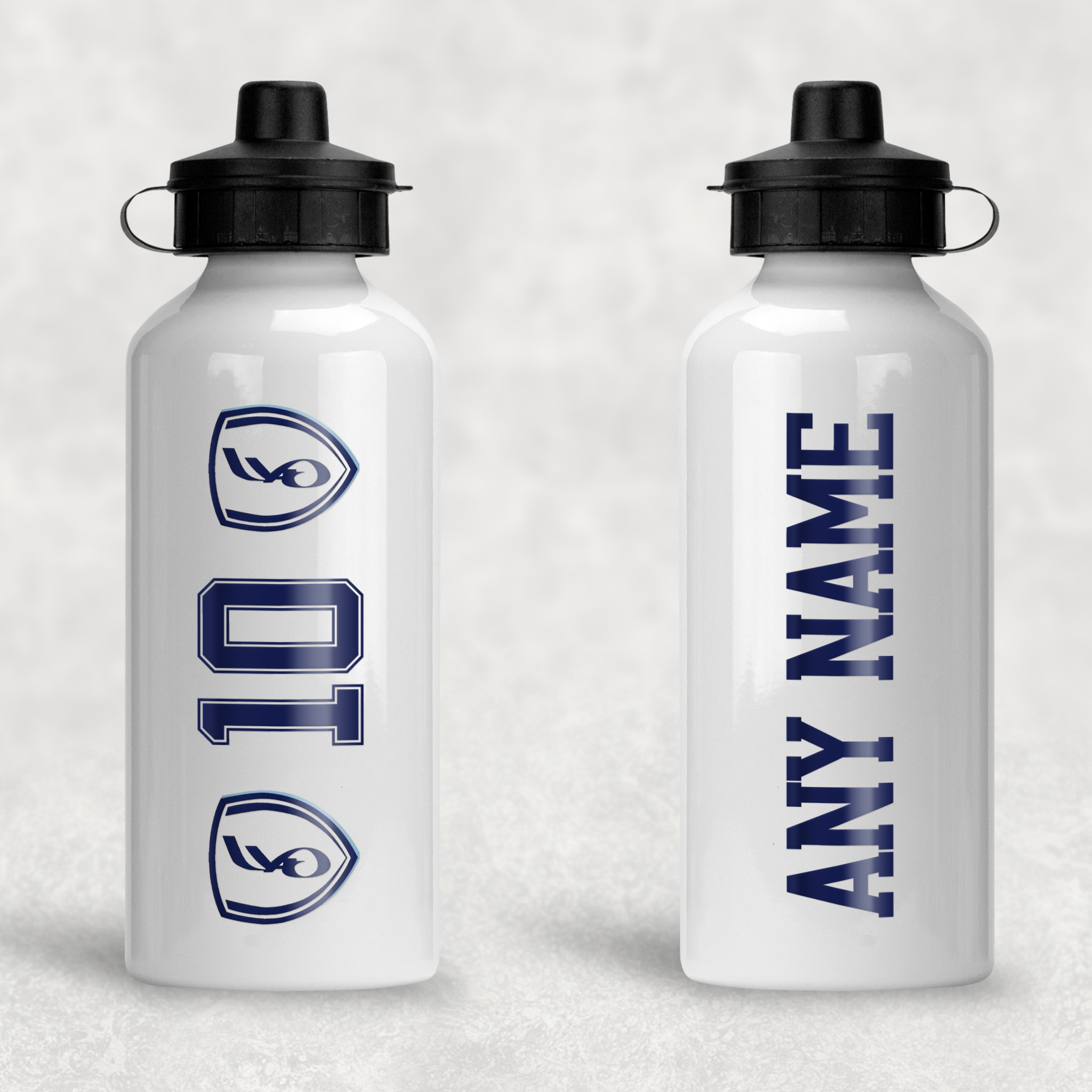 We have our 600ml Sports bottle which is available in a Silver or White bottle with any wording or image you would like added to it.