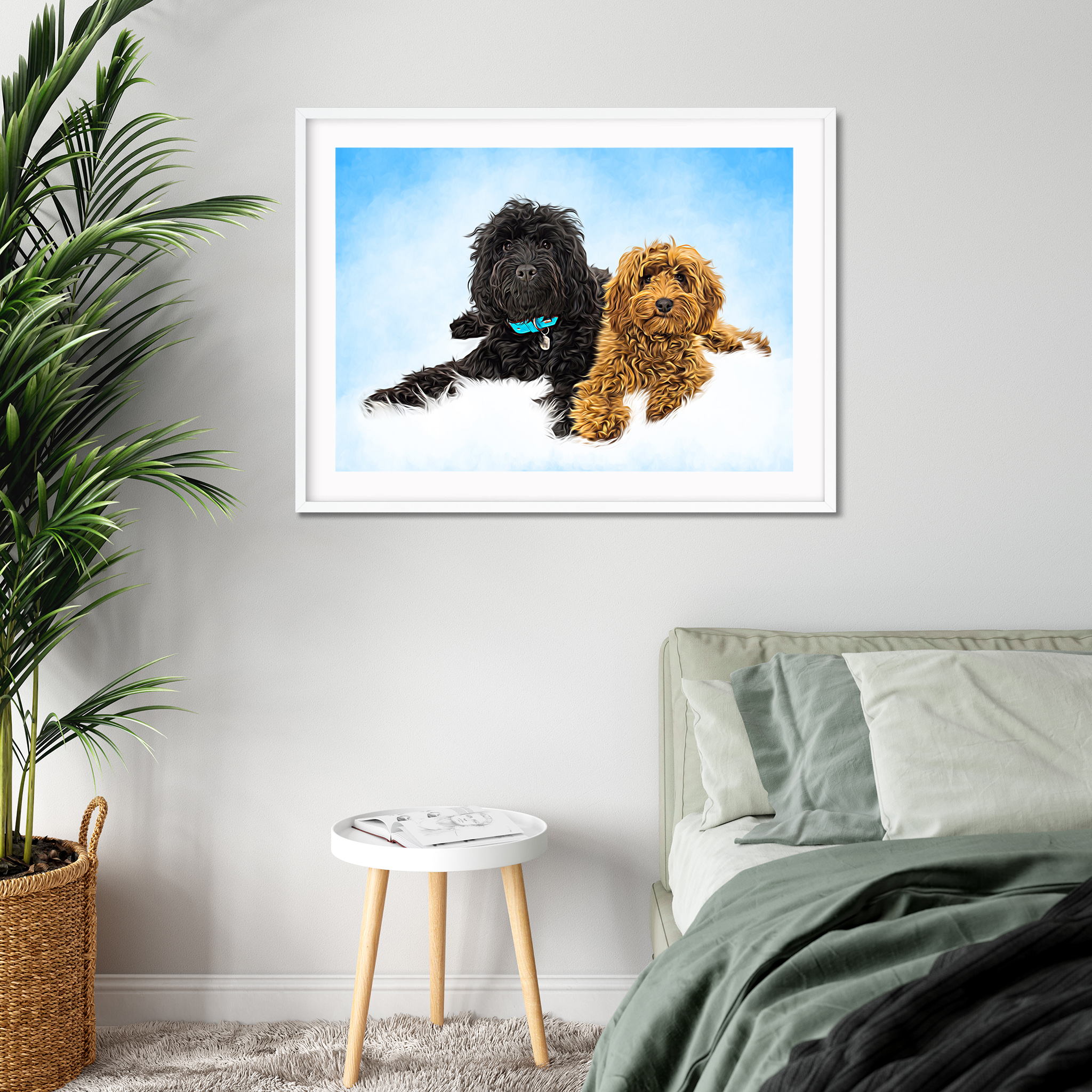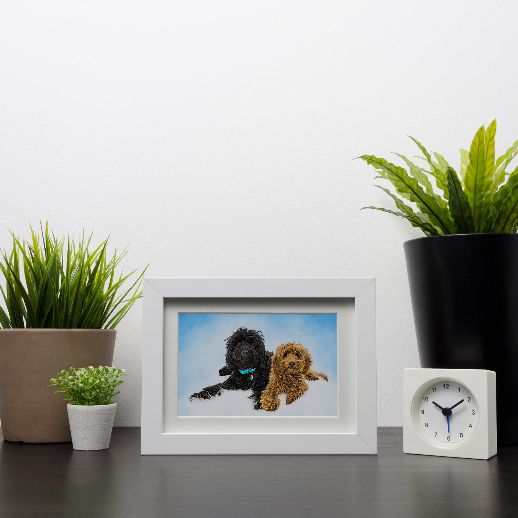 The process takes around 2 working days, we will send you a proof and you will have a couple of alterations, as soon as you have agreed then we will print for you! Prices start from just £25! A perfect personalised gift for anyone at any time of the year or something for your home, if you more than one pet there is a £10 additional charge for up to three pets.