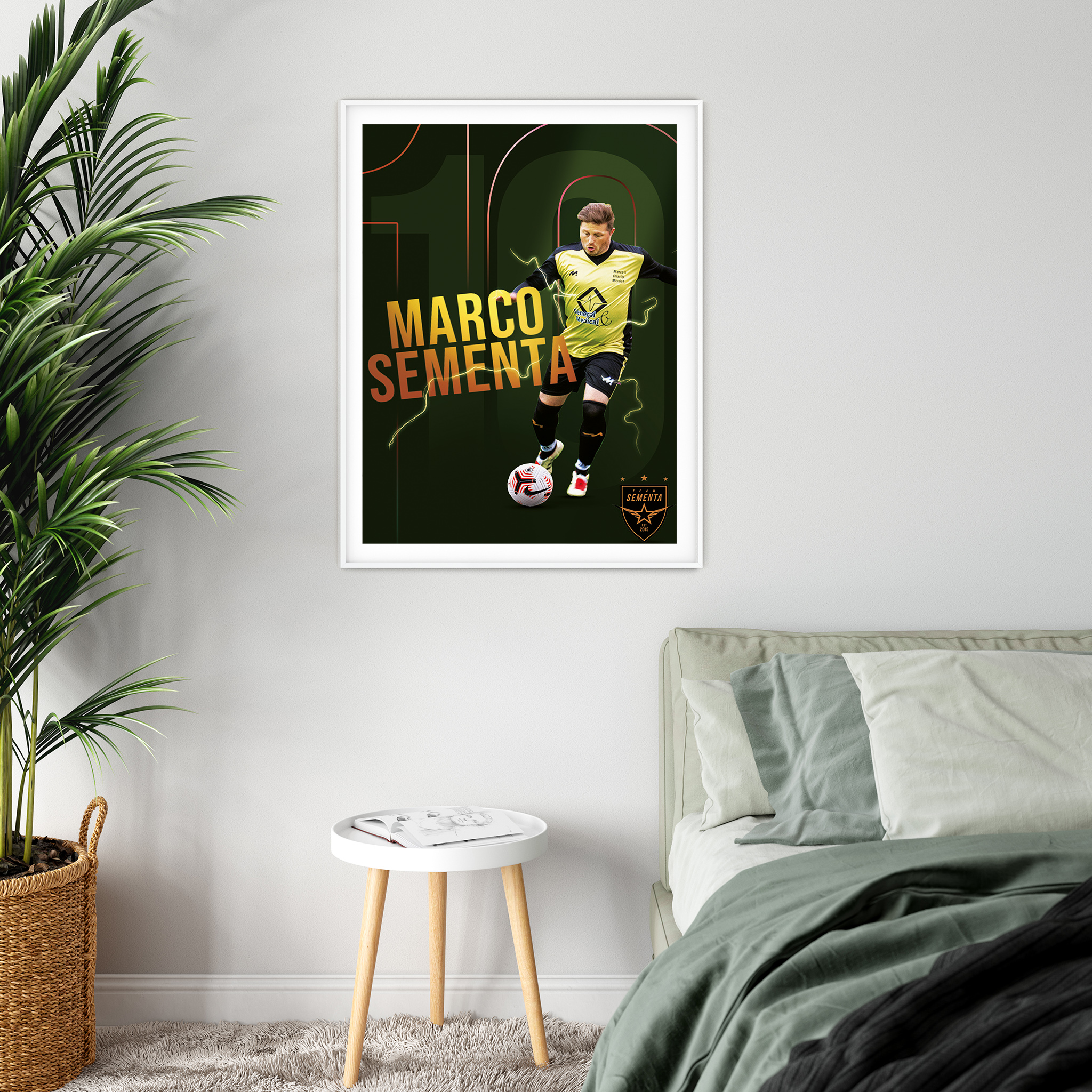 We will design your very own player image including name! We just need you to upload your image and enter your name and shirt number and if you want a different club badge please input and we will design this. Once designed we will send back a proof, once approved we can then print onto your chosen format, not only do you get an amazing product by we also will be donating up to £5 for every single product sold to the ‘Team Sementa Charity’