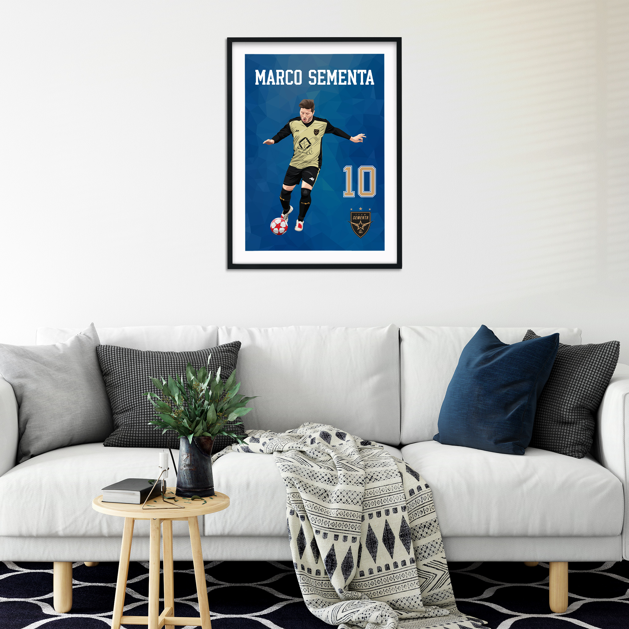 We will design your very own Illustrated player image including name! We just need you to upload your image, your name, shirt number and if you want a different club badge please input and we will design this. Once designed we will send back a proof, once approved we can then print onto your chosen format, not only do you get an amazing product by we also will be donating up to £5 for every single product sold to the ‘Team Sementa Charity’