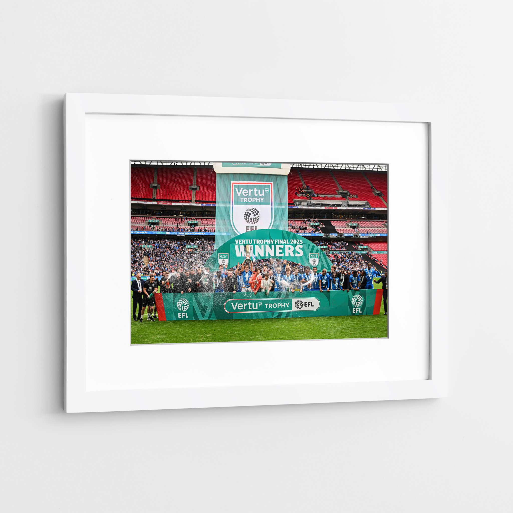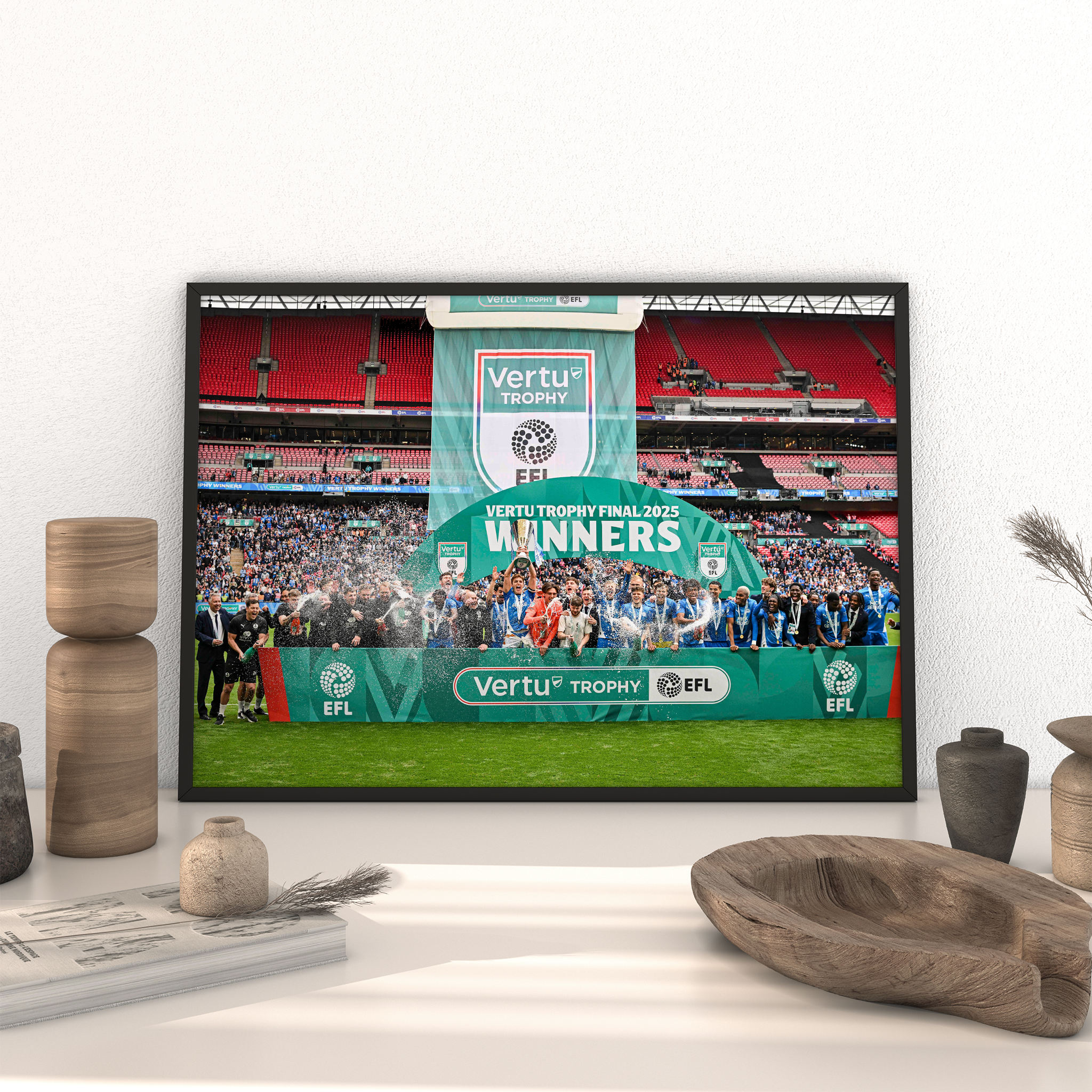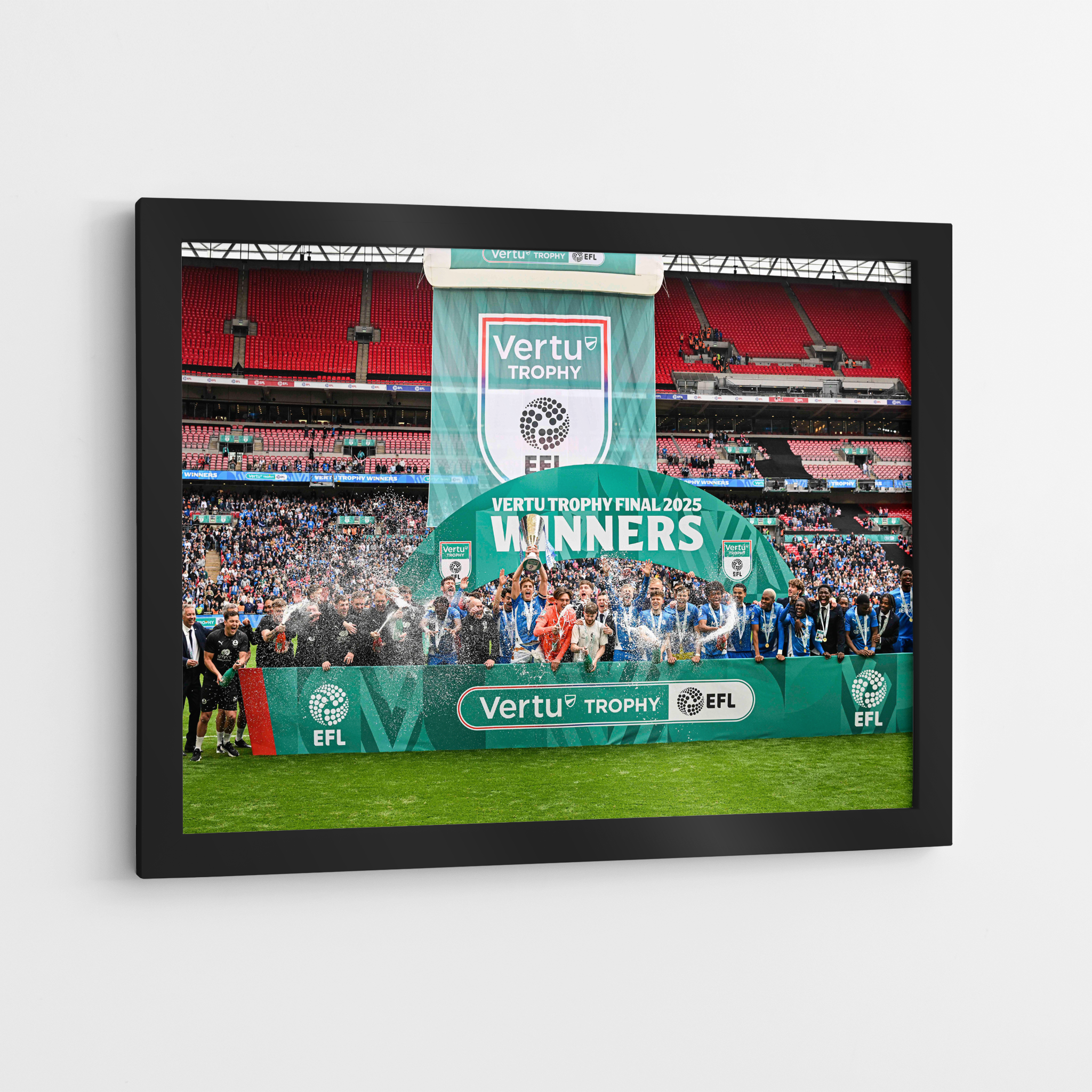 This is our Peterborough United Vertu Cup Winners 24/25 items, which is apart of our Sports Collection. This taken from Trophy Lift on Sunday 13th April 2025 where they awarded the Vertu Cup after beating Birmingham City 2-0 in the Final! Â This image can be printed onto canvas, mounted print or photo print! There are various difference sizes available in all different finishes, this is a fully licensed image with rights purchased.
