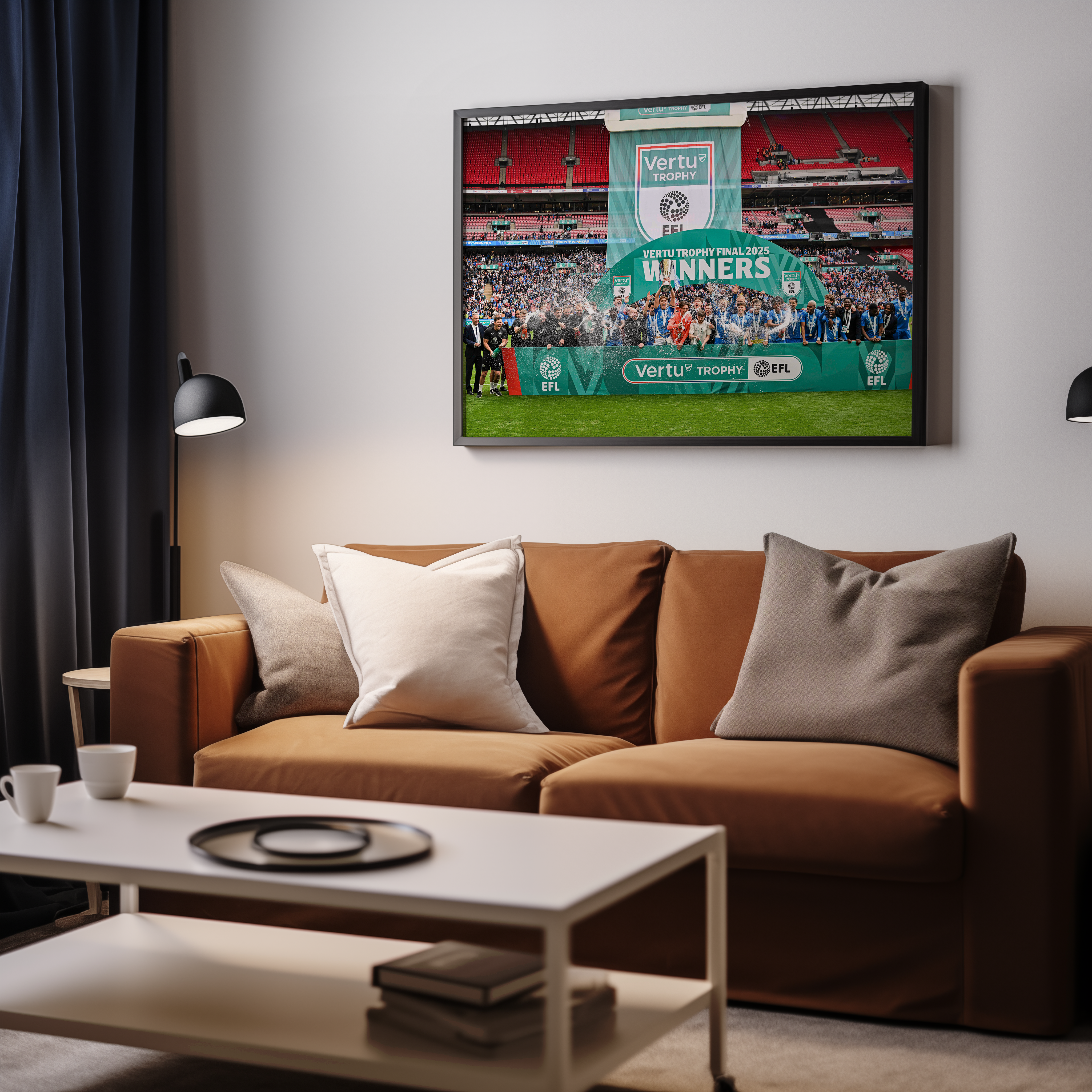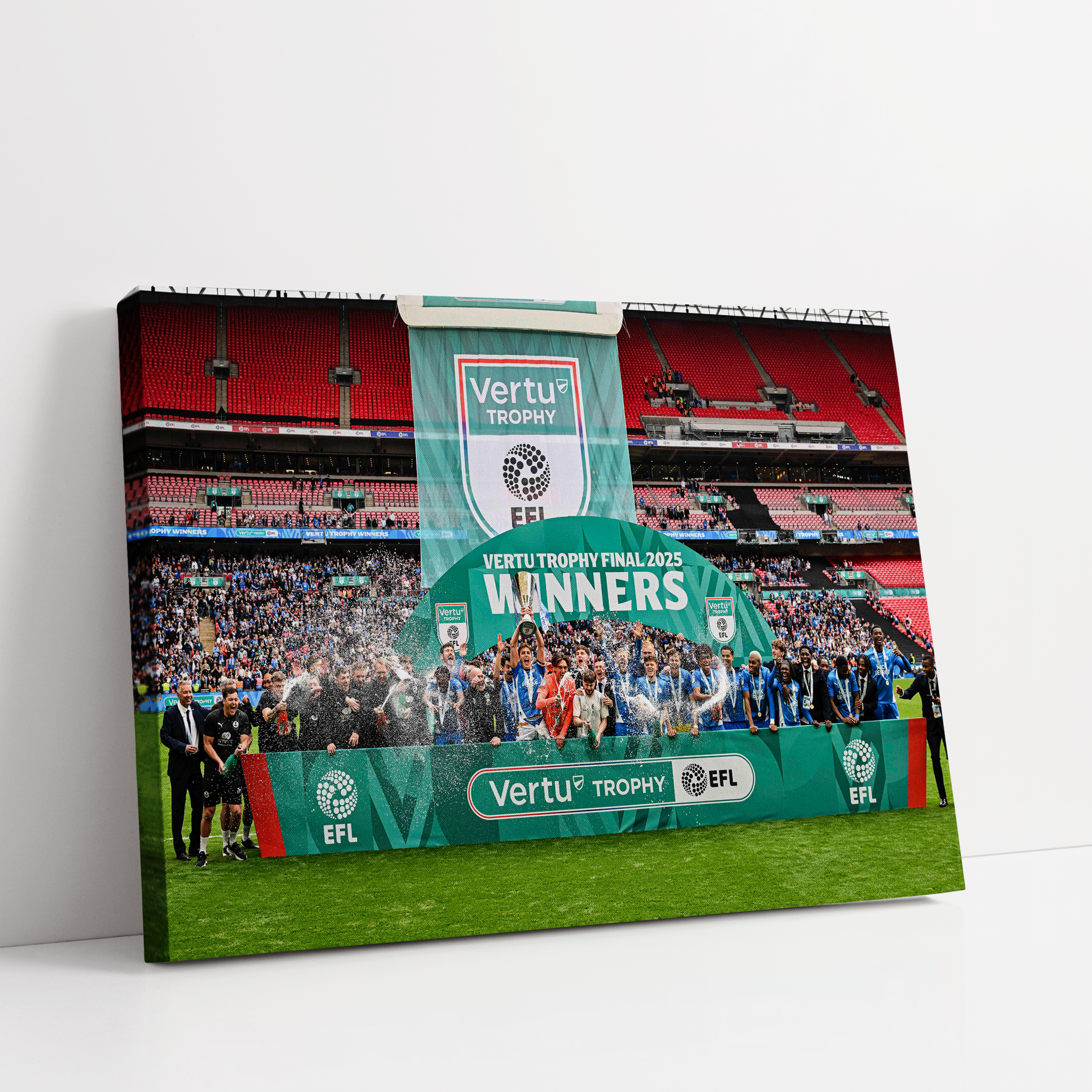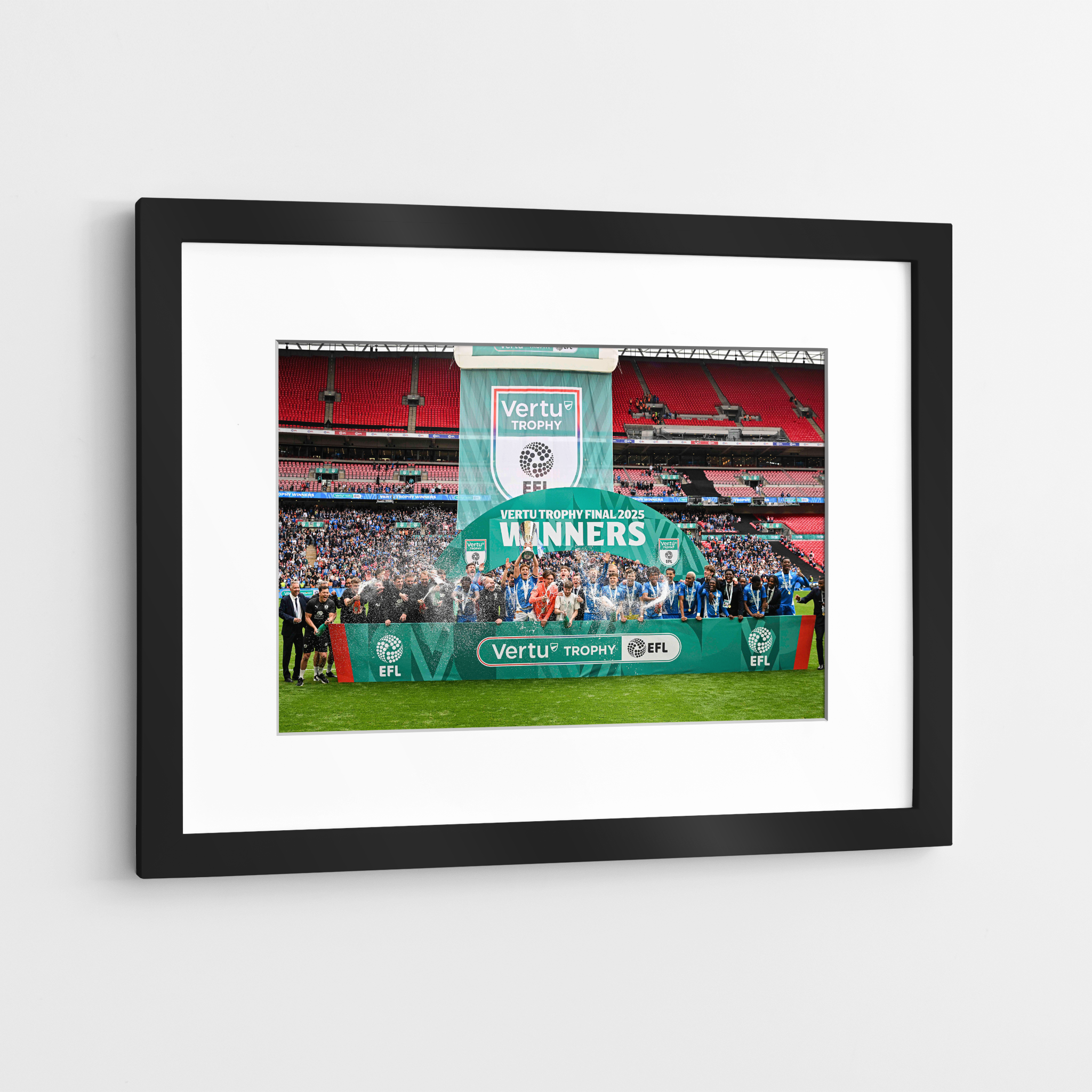 This is our Peterborough United Vertu Cup Winners 24/25 items, which is apart of our Sports Collection. This taken from Trophy Lift on Sunday 13th April 2025 where they awarded the Vertu Cup after beating Birmingham City 2-0 in the Final! Â This image can be printed onto canvas, mounted print or photo print! There are various difference sizes available in all different finishes, this is a fully licensed image with rights purchased.