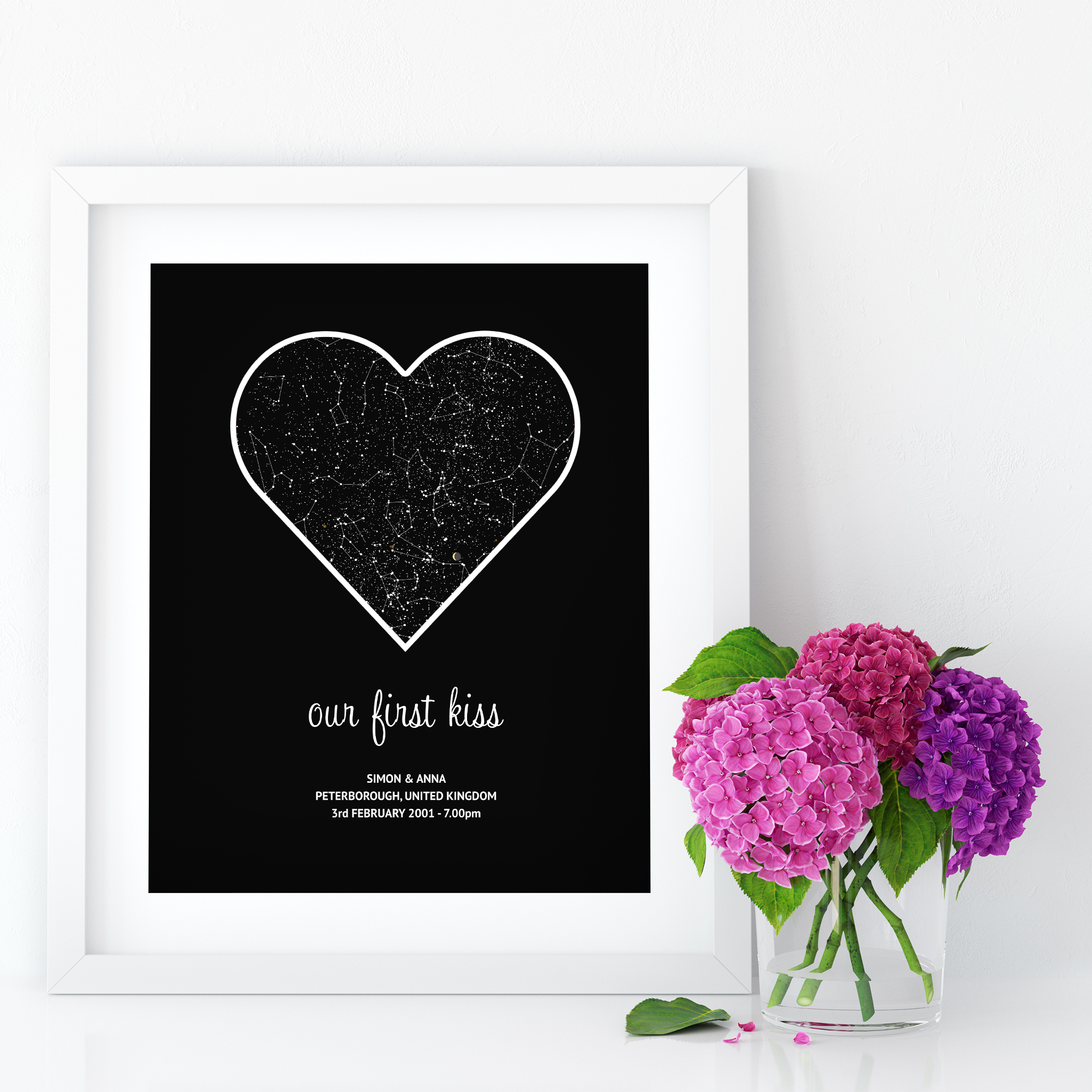 We are very delighted to have our amazing Star Map Version 6 which comes in one design but has various sizes and finishes! A perfect personalised gift getting the star constellation from a moment in time which is very personal to you and a person or family member.
