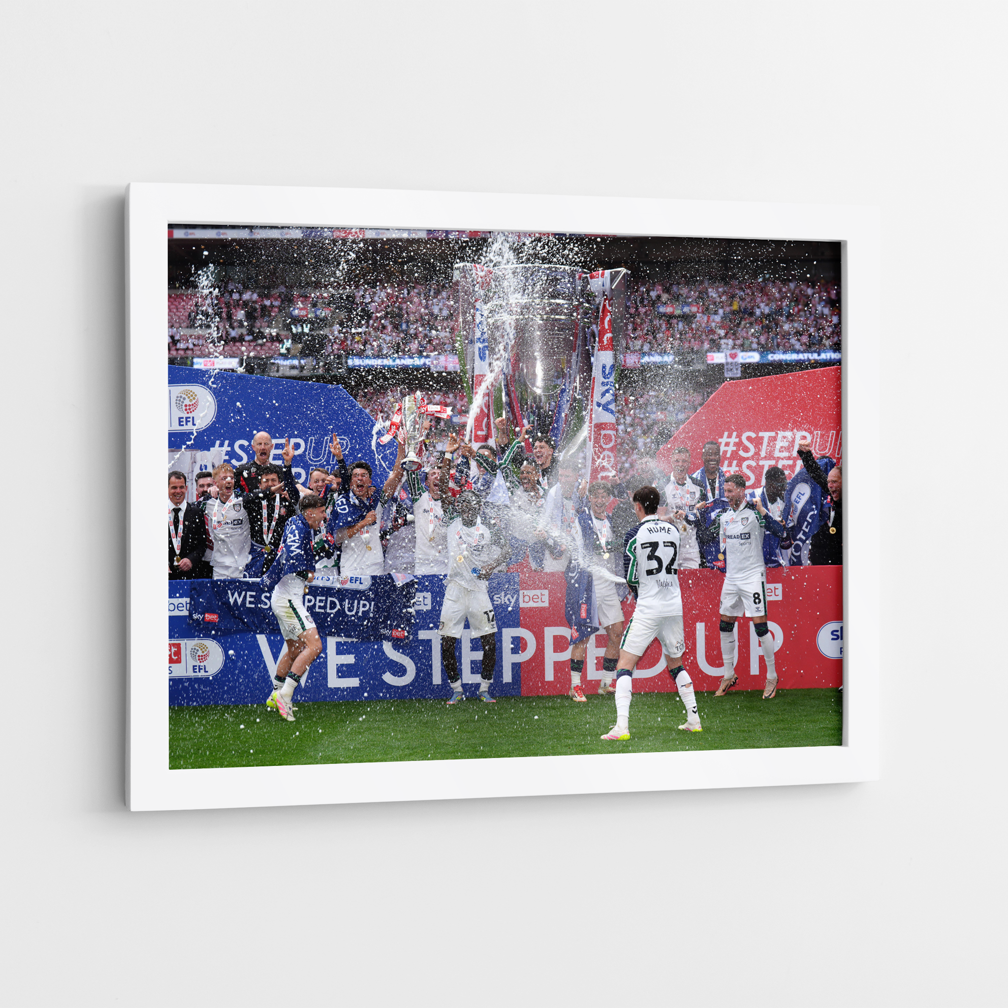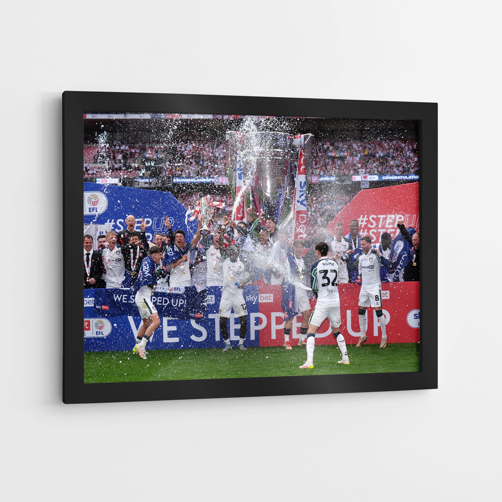 This is our Sunderland Championship play-Off  Winners 24/25 items, which is apart of our Sports Collection. This taken from Trophy Lift on Saturday 24th May 2025 where they awarded the Championship Play-Off  Trophy for beating Sheffield United in the Championship Play-Off Final 2-1 to clinch the clubs first ever major trophy in 17 years!  This image can be printed onto canvas, mounted print or photo print! There are various difference sizes available in all different finishes, this is a fully licensed image with rights purchased.